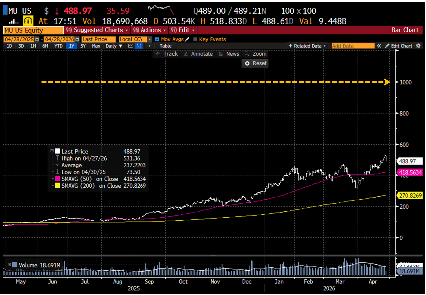 Η θετική αναθεώρηση της ανάπτυξης κερδοφορίας του S&P500 (SPX) οφείλεται σε 6 μόνο εταιρίες (ποσοστό 71%). Από αυτές Micron Technology και Nvidia συνεισφέρουν το 41% της αύξησης του EPS του SPX για το 20026.