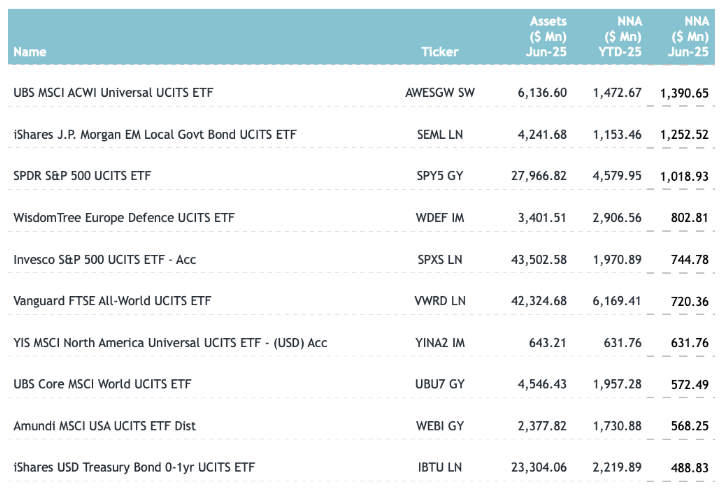 Τα 10 μεγαλύτερα σε εισροές ευρωπαϊκά ETFs για τον ΙΟΥΝ ήταν: