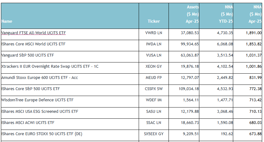 Τα συνολικά κεφάλαια υπό διαχείριση των ευρωπαϊκών ETFs, στα τέλη ΑΠΡ.’25 άγγιξαν τα $2,47 τρισ, που και αυτό αποτελεί ιστορικό ρεκόρ.