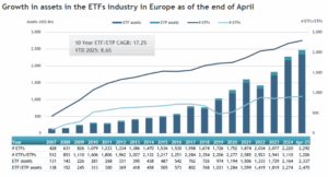 Τα συνολικά κεφάλαια υπό διαχείριση των ευρωπαϊκών ETFs, στα τέλη ΑΠΡ.’25 άγγιξαν τα $2,47 τρισ, που και αυτό αποτελεί ιστορικό ρεκόρ.