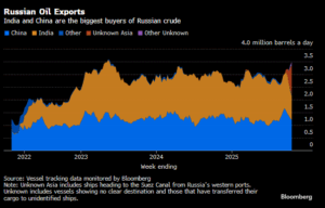 Οι μεγαλύτεροι εισαγωγείς ρωσικού πετρελαίου είναι η Κίνα με 2 εκατομμύρια βαρέλια πετρελαίου ημερησίως και η Ινδία με 1,6 εκατομμύρια βαρέλια πετρελαίου ημερησίως.