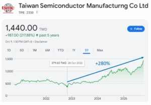 Τέτοιο ποσοστό συμμετοχής εταιρίας σε δείκτη συναντιέται σπάνια στη σύγχρονη χρηματοοικονομική εποχή. Η TSMC είναι η μεγαλύτερη ανεξάρτητη κατασκευάστρια ημιαγωγών (“pure-play” semiconductor foundry) στον κόσμο που κατασκευάζει τσιπ για κορυφαίες εταιρείες τεχνολογίας π.χ. Apple, NVIDIA, AMD, Google, οι οποίες σχεδιάζουν τα δικά τους τσιπ αλλά αναθέτουν την παραγωγή στην TSMC. Τα τσιπ της TSMC είναι απαραίτητα για την πλειονότητα των σύγχρονων ηλεκτρονικών συσκευών, από smartphones και υπολογιστές μέχρι αυτοκίνητα, κέντρα δεδομένων και συστήματα Τεχνητής Νοημοσύνης (AI).