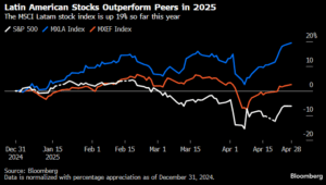 Συγκεκριμένα ο δείκτης MSCI EM Latin America Index (MXLA) το 2025, σημειώνει απόδοση +19% όταν ο δείκτης αναφοράς μετοχών των ΗΠΑ S&P500 υποχωρεί στο -6%.
