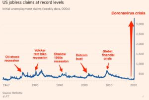26/03/2020: Ιστορικό Ρεκόρ 3,28 εκ Αιτήσεων Επιδόματος Ανεργίας στις ΗΠΑ. Συγκεκριμένα, ο αριθμός των εργαζομένων που υπέβαλλαν αίτηση για παροχή επιδόματος ανεργίας στις ΗΠΑ ήταν 3.283.000 μέσα σε μία εβδομάδα (υπολογίστηκε με 21/03/2020). Το νούμερο αυτό ήταν αυξημένο κατά 3.001.000 αιτήσεις περισσότερες από αυτό της προηγούμενης εβδομάδας (αναθεωρημένο νούμερο 282.000).