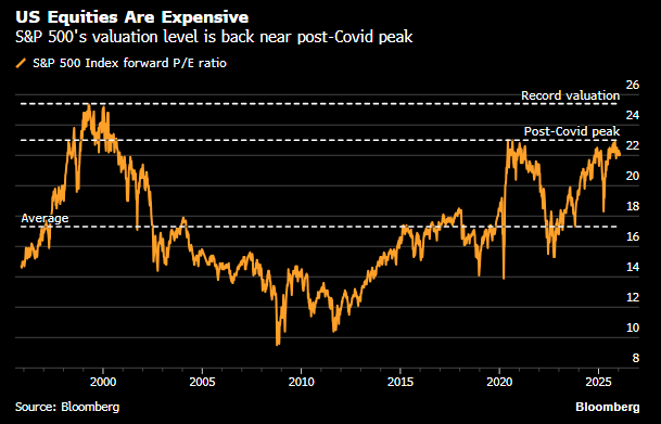 Οι αποτιμήσεις για τον S&P500 εκτοξεύτηκαν στο υψηλότερο επίπεδό τους εδώ και 6 χρόνια στο τέλος του 2025, θέτοντας έναν υψηλό πήχη για τα κέρδη που δικαιολογούν μια τέτοια αισιοδοξία. Ενώ ο λόγος τιμής προς κέρδη (P/E) για τον δείκτη έχει έκτοτε υποχωρήσει ελαφρώς, παραμένει σχεδόν 30% υψηλότερος από τα ιστορικά επίπεδα. Οι υψηλές αποτιμήσεις… Περισσότερα »