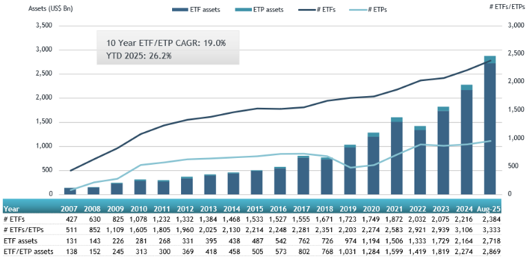 Στην ευρωπαϊκή αγορά των ETFs τον μήνα Ιούλιο, σημειώθηκαν καθαρές εισροές $31,18 δισ, οδηγώντας τις καθαρές εισροές του 2025 (YTD) στα $207,28 δισ που αποτελεί ιστορικό ρεκόρ 7μήνου (προηγούμενα ρεκόρ 7μηνου 2024: +$127,19 δισ, 2021: +$127,08 δισ) (Πηγή: ETFGI)…