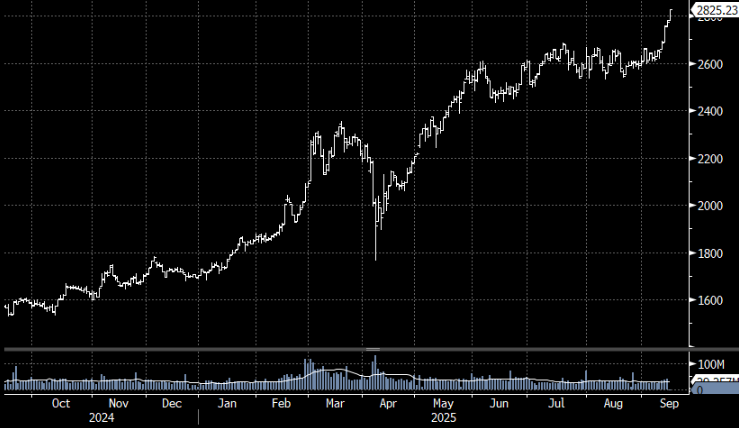 Η κεφαλαιοποίηση της παγκόσμιας αγοράς μετοχών υπολογίζεται στα $144,76 τρισ (Πηγή: BBG, 16.09.2025).