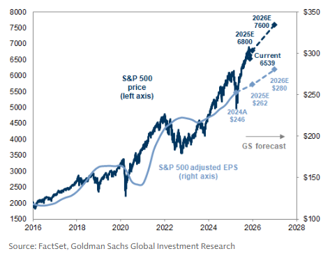 S&P500: Τιμή-Στόχος 7.600 μον. για το 2026 από GS (23.11.2025)