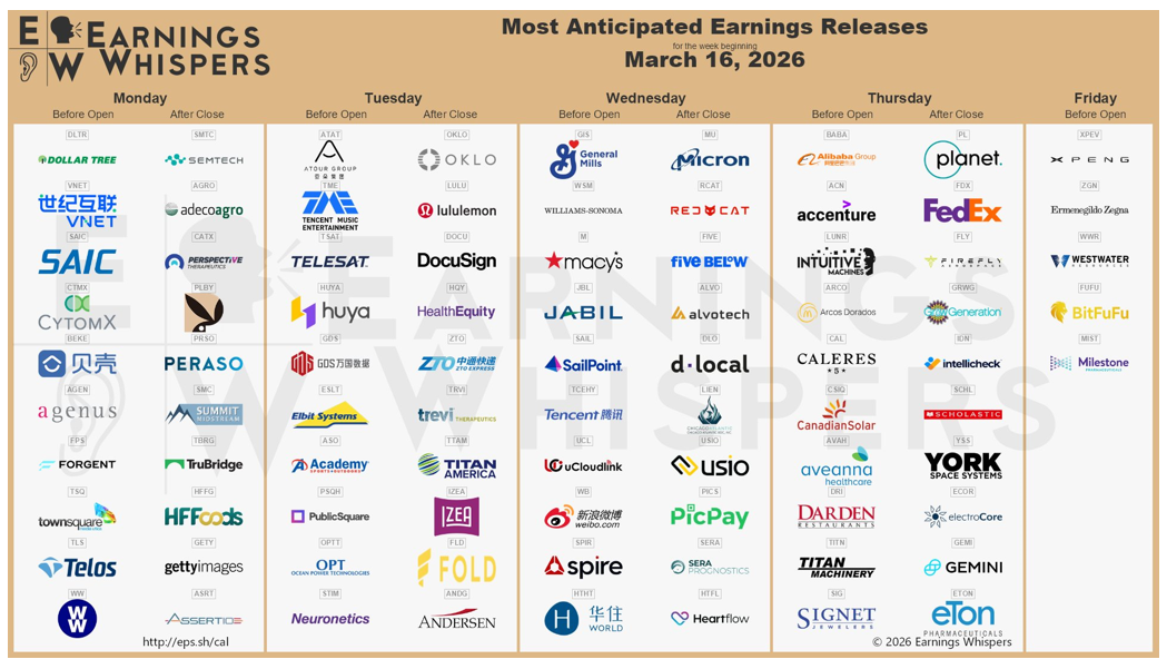 ΗΠΑ: Εταιρικά Αποτελέσματα Εβδομάδας (14.03.2026)