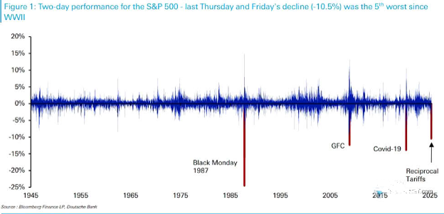 Αποτέλεσμα της απόφασης Τραμπ για αναστολή κάποιων δασμών σε 75 χώρες για 90 μέρες πλην Κίνας (στην οποία αύξησε τους δασμούς στο 125% με άμεση ισχύ). Επίσης, αποτελείτην 3η μεγαλύτερη άνοδο στην ιστορία του δείκτη μετά τον WWII (οι 2 πρώτες έχουν σημειωθεί το 2008).