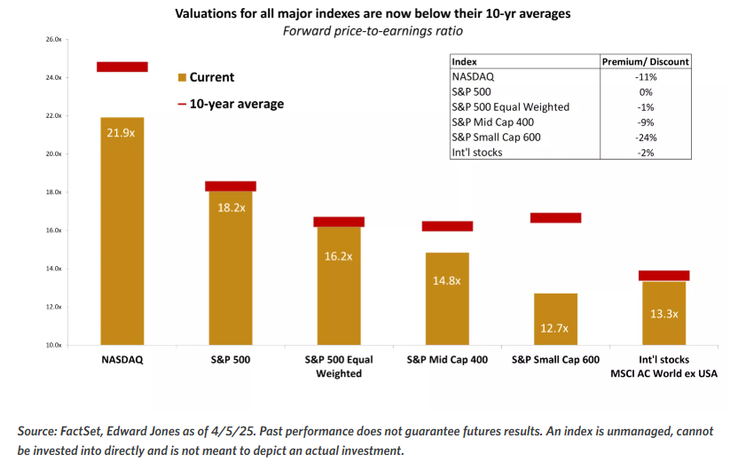 Ο δείκτης Nasdaq έχει πλέον P/E 21,9x και βρίσκεται -11% χαμηλότερα από τον 10ετή μέσο όρο (Μ.Ο.) 24,3x. O δείκτης S&P500 έχει πλέον P/E 18,2x που αποτελεί και τον 10ετή του μέσο όρο (Μ.Ο.).