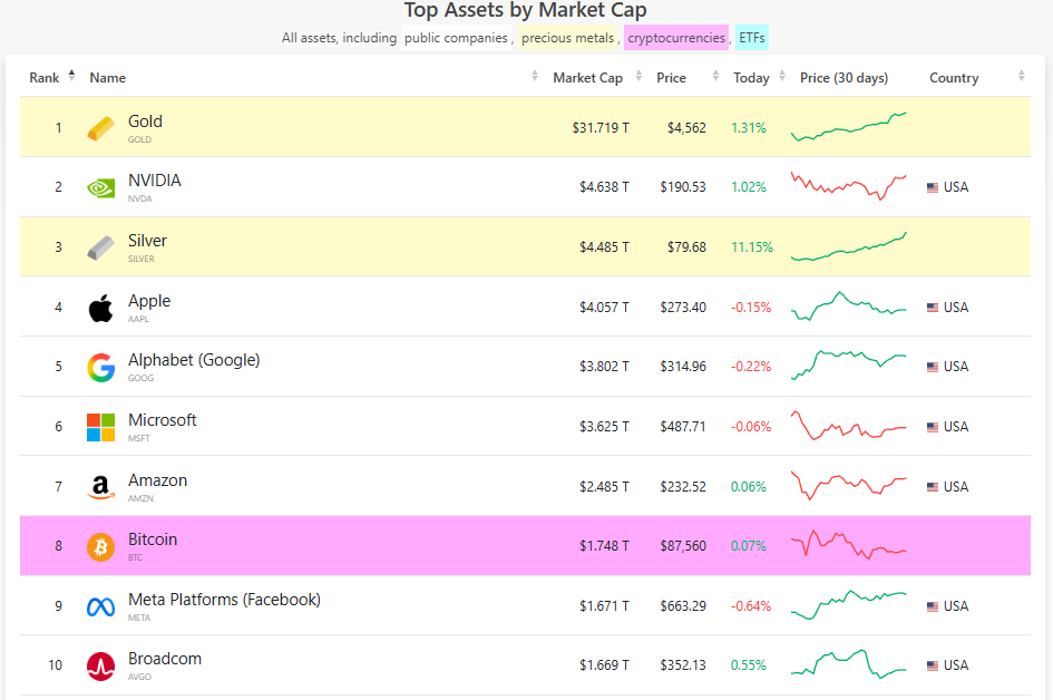 Η πρόσφατη έντονη ανοδική κίνηση του ασημιού, έχει οδηγήσει το ασήμι στην 3η θέση των πολυτιμότερων επενδυτικών προϊόντων παγκοσμίως.