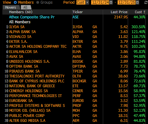 IBEX: Υπεραπόδοση+49,3% το 2025 (31.12.2025)