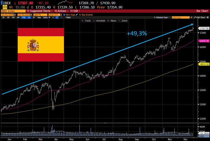 Ο ισπανικός δείκτης αναφοράς μετοχών IBEX, το 2025 κατέγραψε κέρδη +49,27%, την καλύτερη απόδοση από το 1993.