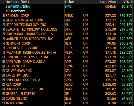 S&P500: Top20 σε Αποδόσεις 2026 (06.01.2026)