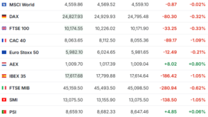 * LVMH lower after the luxury group reported a wider-than-expected drop in fashion and leather goods organic sales for the fourth quarter. Analysts noted management’s limited forward guidance and comments on the uncertain short-term outlook.