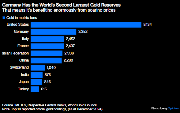 Η Γερμανία βρίσκεται στη 2η θέση της λίστας των χωρών με τα μεγαλύτερα αποθέματα χρυσού παγκοσμίως: