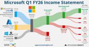 Η Microsoft (MSFT US) ανακοίνωσε (29.10) τα εταιρικά της αποτελέσματα για το Q1:2026 που ήταν καλύτερα σε όλες τις μονάδες πωλήσεων. Καλή ανάπτυξη στο cloud (Azure) +39% y/y (εκτ +37,1%) αλλά με τους επενδυτές να ζητούν ακόμα μεγαλύτερη ανάπτυξη στο πάνω εύρος των εκτιμήσεων: 40-43%. Οι πωλήσεις στα $77,67 δις, +18% y/y (εκτ $75,55 δις) και EPS $3,72 (εκτ $3,67).