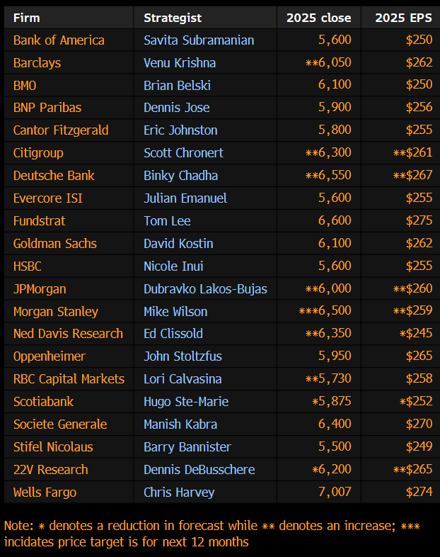 Η μέση τιμή στόχος 2025 για το δείκτη αναφοράς μετοχών στις ΗΠΑ, S&P 500 είναι 6.061 μονάδες (Πηγή Bloomberg) όταν ο δείκτης βρίσκεται ήδη στις 6.265 μον.