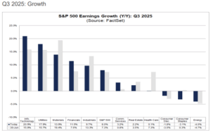 Εταιρικά Αποτελέσματα S&P500 για Q3:2025: Πρόβλεψη για +8% (EPS), (όταν στις στις 30.06 ήταν 7,3%, Πηγή: FactSet, 03.10).