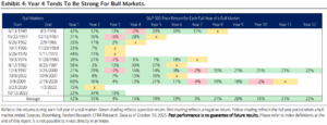 Με τις αγορές πρόσφατα να περνούν στο 4ο χρόνο του bull market που ξεκίνησε στις (12.10.2022) ενδιαφέρον έχουν τα στατιστικά στοιχεία που παρέχει η BofA για την πιθανή πορεία των μετοχών στις ΗΠΑ. Εάν υπάρξουν θεμελιώδεις λόγοι για τη συνέχιση του ράλυ, ο 4ος χρόνος του bull market ιστορικά δίνει (μέση) απόδοση +15%.