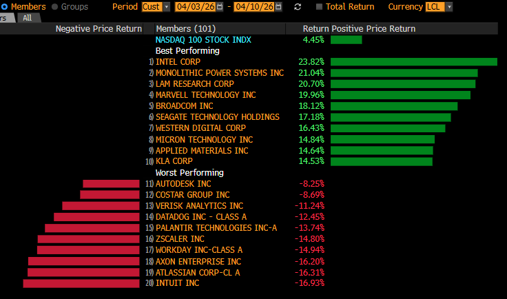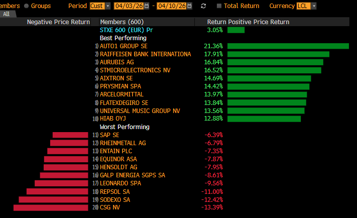 Μετοχές: Αποδόσεις Εβδομάδας (11.04.2026) Εκτύπωση άρθρου | Αποστολή με Email Ημ. Δημοσίευσης : 11 Απριλίου 2026 - Featured, Markets Αποδόσεις Μετοχών Nasdaq100: Αποδόσεις Μετοχών Ευρώπης – SXXP: Προβολές: 17