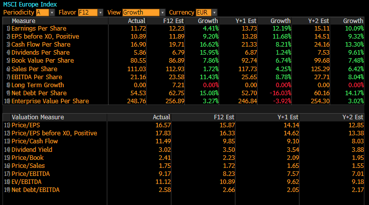 MSCI Europe: Δείκτες Αποτίμησης Bloomberg: