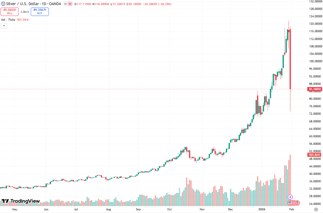 (ii) ιστορική πτώση του ασημιού με -26,4% την Παρασκευή που αποτελεί τη 2η μεγαλύτερη πτώση στην ιστορία του ασημιού (η 1η στις 27.03.1980 με -31,6%). Επίσης ο χρυσός στο -10%.