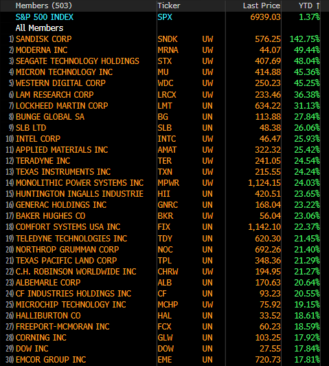 Σε επιμέρους αποτελέσματα εταιριών που ξεχώρισαν θετικά ήταν αυτά των: Texas Instruments, Seagate, SanDisk, IBM, Caterpillar, Honeywell, Lockheed Martin, Verizon.Τα αποτελέσματα της Microsoft (δες παρακάτω) απογοήτευσαν με αποτέλεσμα η μετοχή να υποχωρήσει -10%, χάνοντας την Πέμπτη $357 δις από την κεφαλαιοποίησή της που αποτελεί τo 2o μεγαλύτερo ρεκόρ ημερήσιας υποχώρησης κεφαλαιοποίησης εταιρίας στις ΗΠΑ. Η πτώση αυτή της MSFT οδήγησε τον σχετικό δείκτη Dow Jones U.S. Software Index (DJUSSW) σε bear market (-21,5% από τα υψηλά του στις 28.10.2025). Και στην Ευρώπη όμως ο κλάδος δε βιώνει καλύτερες καταστάσεις με τη γερμανική SAP στο -16% μετά από τα εταιρικά της αποτελέσματα που έδειξαν ασθενέστερη από την αναμενόμενη αύξηση στο ανεκτέλεστο υπόλοιπο συμβάσεων cloud για το Q4. Το τρέχον ανεκτέλεστο υπόλοιπο στο cloud αυξήθηκε κατά 16% στα €21,1 δισ ευρώ, κατώτερο των προσδοκιών για ανάπτυξη περίπου 26%, την οποία οι αναλυτές της UBS χαρακτήρισαν ως «απογοητευτική».
