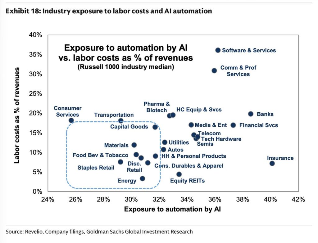 Επιπρόσθετα πιέστηκαν και οι μετοχές εταιριών Επιχειρηματικής Ανάπτυξης (Business Development Companies – BDC): Blackstone, Apollo Global Management, Blue Owl Capital, TPG, ARES, KKR & Co, καθώς το λογισμικό κατέχει το μεγαλύτερο βάρος στα χαρτοφυλάκια των BDCs, με περίπου 20%, καθιστώντας τον κλάδο ιδιαίτερα ευαίσθητο στην πρόσφατη μείωση των αποτιμήσεων μετοχών και πιστώσεων (credit) λογισμικού. Η συνολική έκθεση ήταν περίπου $100 δισ στο Q3:2025 (Πηγή: Barclays).