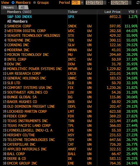 Αποδόσεις S&P500 2026 (ytd):