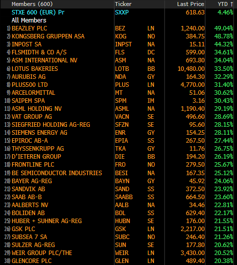 Αποδόσεις SXXP 2026 (ytd):