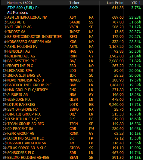 Αποδόσεις Μετοχών Ευρώπη (ytd):