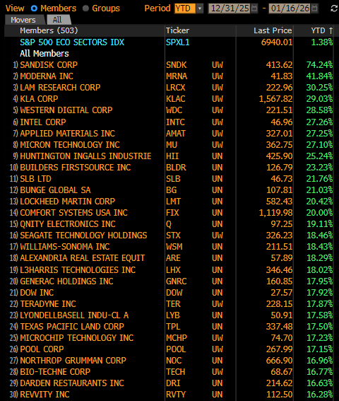 Αποδόσεις Μετοχών S&P500 (ytd):
